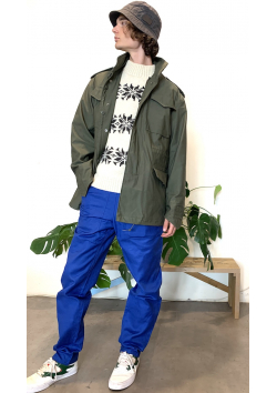 M-65 jacket was worn by every young Americans during the Vietnam war. It is made to stop cold and damp, as to walk into hostile environment. Then this jacket was adopted by every young people, as a symbol of counter-culture. It lasted because it is handy, useful, sturdy and very well fitted.