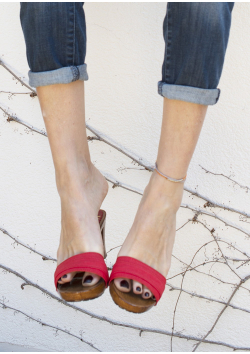 The Italian wooden mule, with a simple cotton band exposing the toes, gives an exquisite arch of the foot as it stretches the calves and accomplishes the incredible task of making your legs look longer, all while being comfortable.