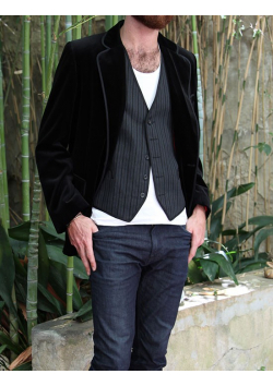 Always with its black braiding on piping and pockets and available in all the traditional colours of Camargue, this vest would definitely give credibility to a pair of balloon sleeves or a touch of mystery to a plain shirt.