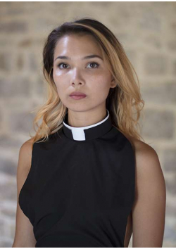 Rabat du clergé romain en couleur noire, attaché à la nuque par un bouton à pression, avec une ceinture élastique. Collier en plastique inclus.